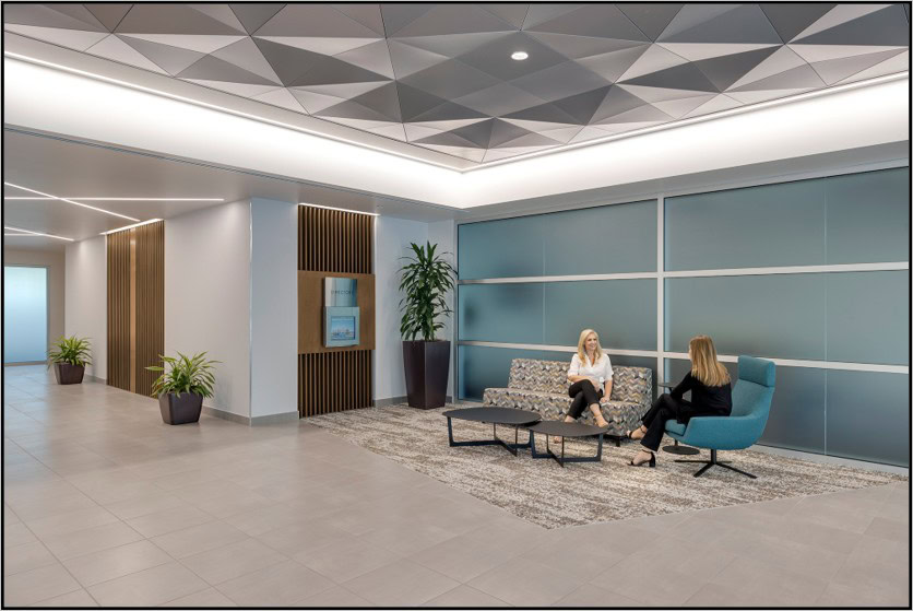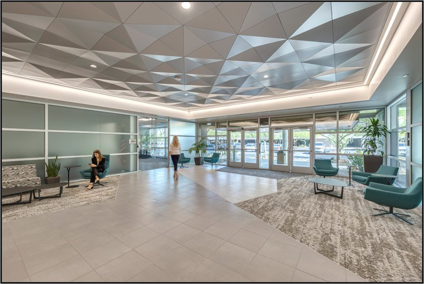 This project involved a complete interior remodel featuring a striking 3D metal acoustical ceiling, energy-efficient LED lighting, new storefront glazing systems, and custom wood slat wall accents. The result is a modern, visually engaging space that combines form, function, and acoustic performance.